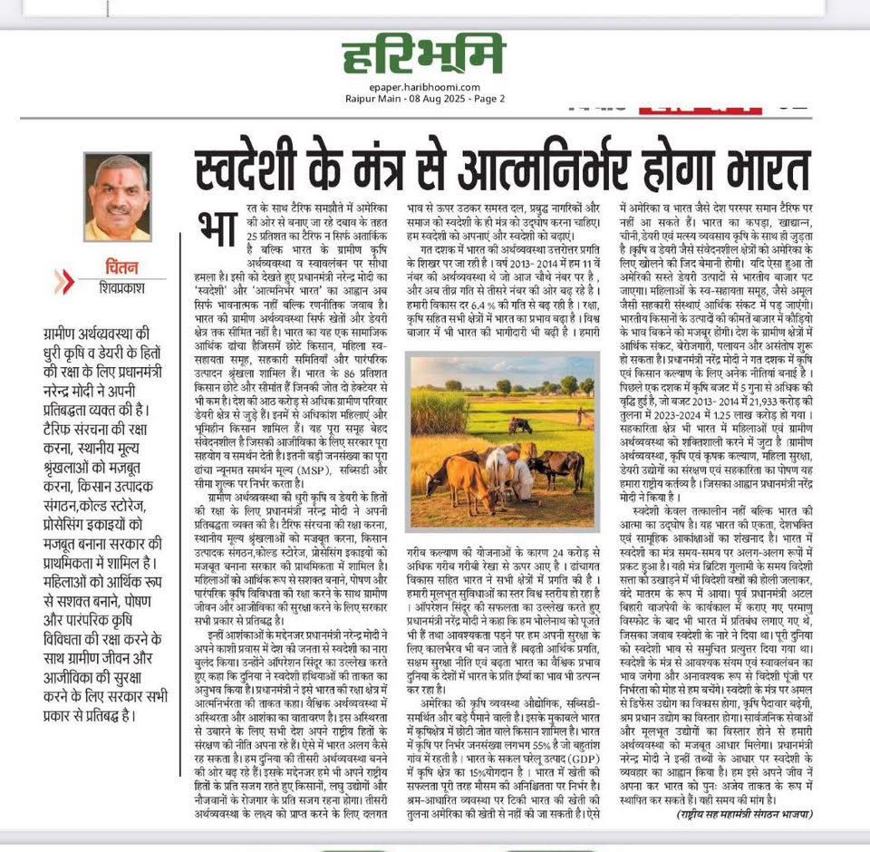 स्वदेशी के मंत्र से आत्मनिर्भर होगा भारत