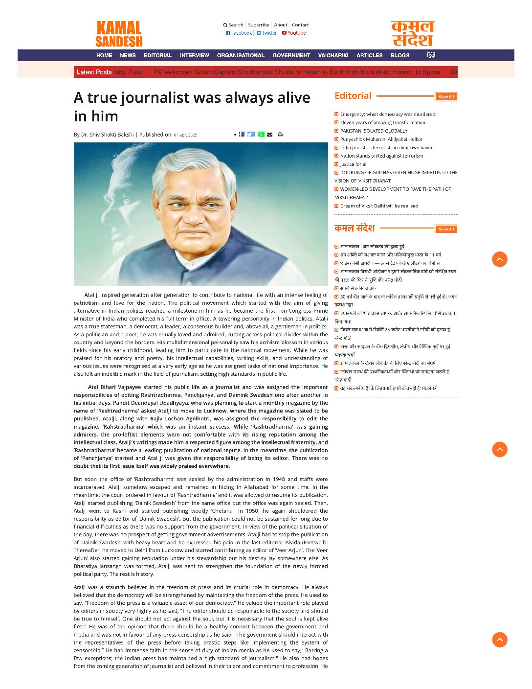 सहारा न्यूज़ पेपर – अटल, विराट, व्यक्तित्व