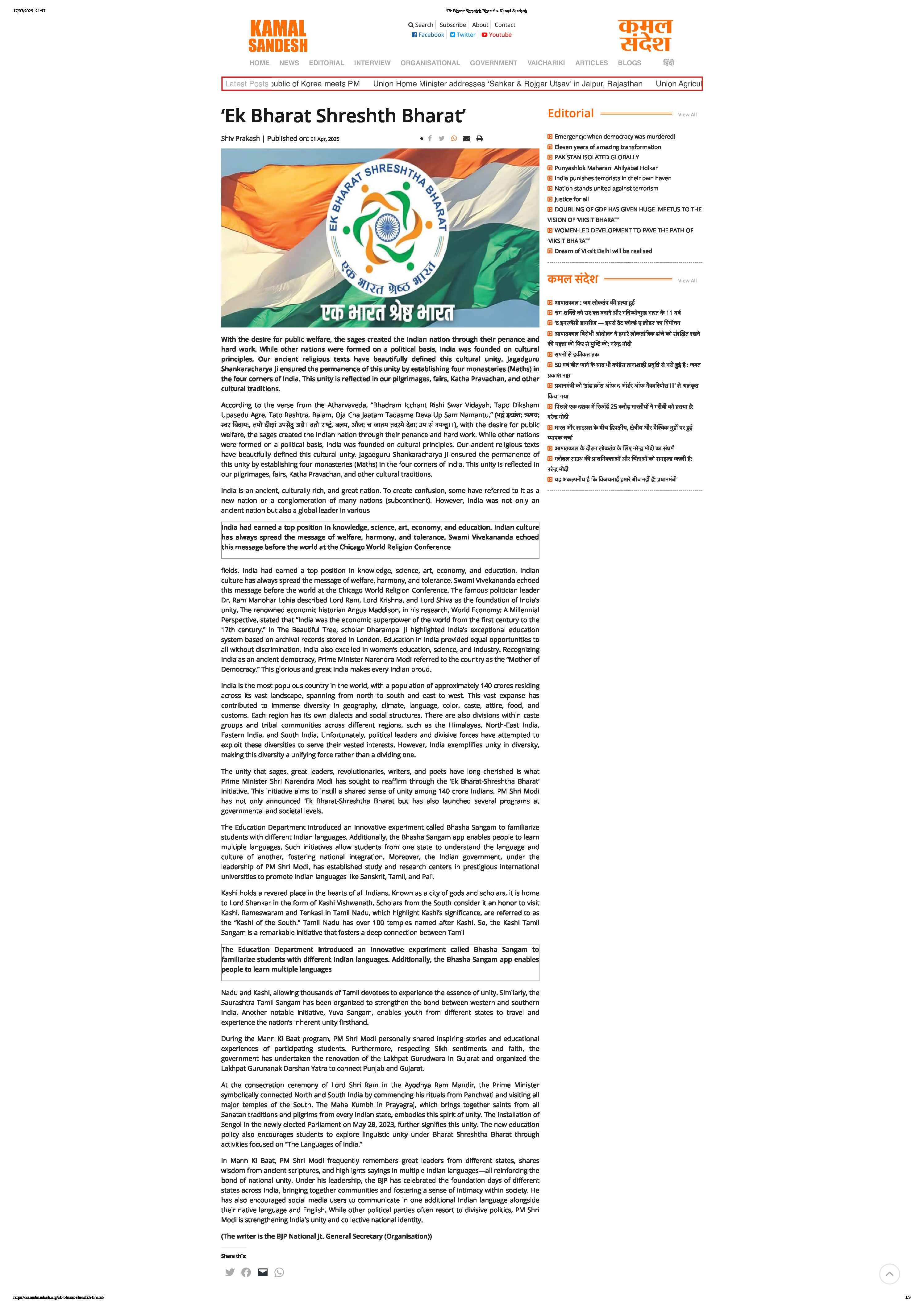 दीनदयाल के सपनों को साकार करती मोदी सरकार – कमल संदेश